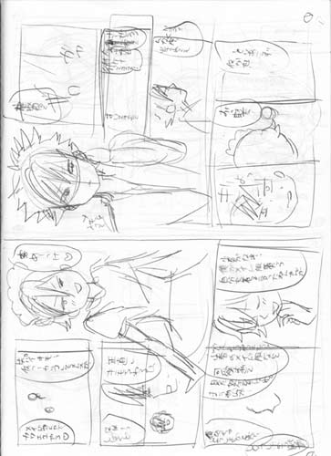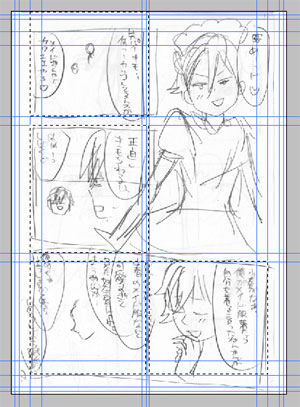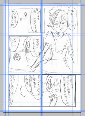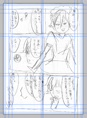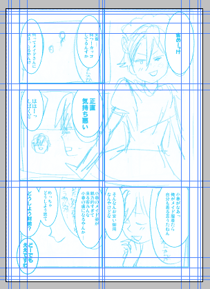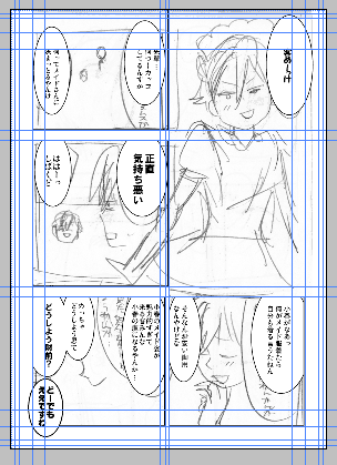 B5の半分に線引いて適当にコマ割ってとてもラフな下書きをします。