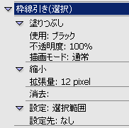 黒で塗りつぶし→選択範囲を縮小→消去→選択範囲を解除のはずなんですけど一番下のなんだろ。