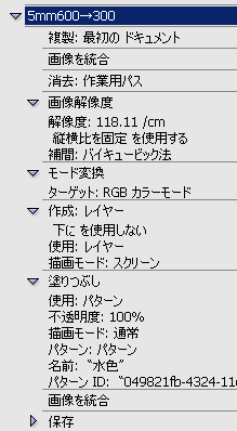 画像を複製→画像の統合→画像解像度の変更→RGBに変換→色の変換。